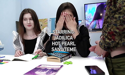 CFNM foursome with school chicks - Honour May & Jasmine Brooks