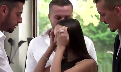 Gorgeous French Girl Taken Down in Raunchy Gangbang