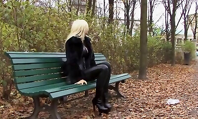 Blonde in latex catsuit & fur