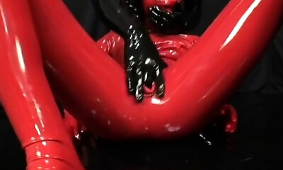 Red + Black Latex Catsuit Girl And High Heel Torture - Rubber Whore Heeljob