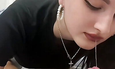 Kristi having fun while giving her boyfriend a ultra-cute blowjob