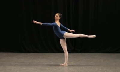 Flawless hottie ballerina Annett A with a flexible magnificent female figure poses for me in a black stage costume. T-5(6)