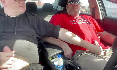 Stroking our Cocks In van in a parking lot