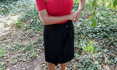 Watch my milf wife with big congenital tits stripping outdoors - insane exhibitionist fun