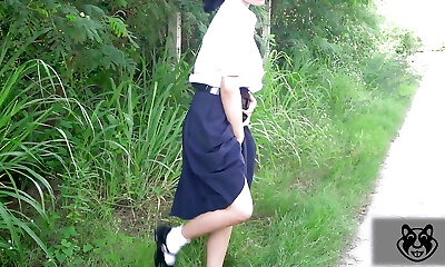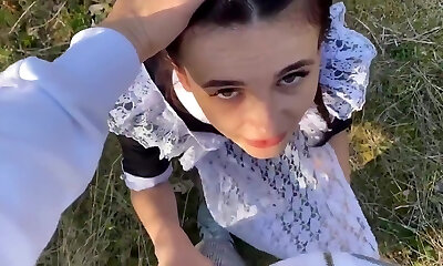 The Schoolgirl Went In For Sports In The Forest But Controlled To Give Me A Blowjob