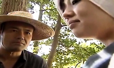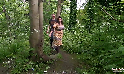 Mother-in-law helps sonnie-in-law to get satisfaction in the woods after a picnic