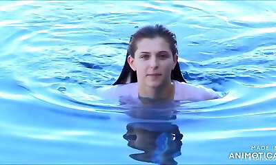 Lustful policeman fucks enrapturing brunette bikini girl on the river bank