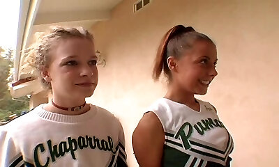 Cheerleader in panties licking scrotum in ffm porn shoot
