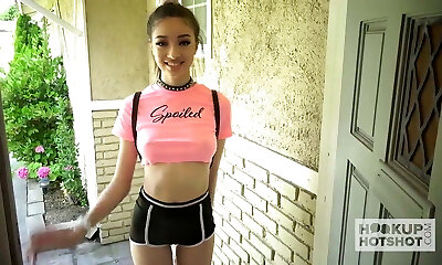 Skinny Asian brunette, Minute is spreading her legs wide and getting fucked in a hotel guest room