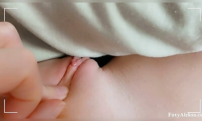 Puny pussy thinks about sex after waking up. Rubbing small clitoris and screwing it with a finger – edible wet pussy